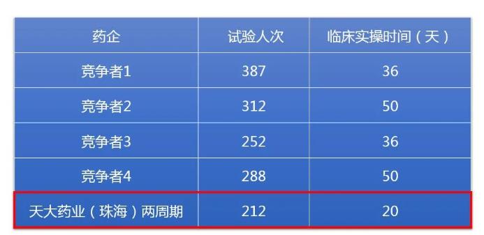 對(duì)比其他競(jìng)爭(zhēng)對(duì)手,天大藥業(yè)的一致性評(píng)價(jià)試驗(yàn)確實(shí)在時(shí)間和費(fèi)用成本上占據(jù)明顯優(yōu)勢(shì)。