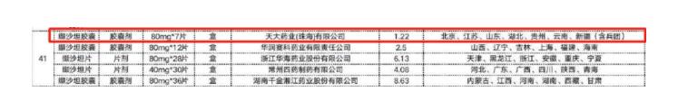 從品種上看,包括糖尿病、高血壓以及精神疾病等細(xì)分領(lǐng)域競(jìng)爭(zhēng)十分激烈,僅纈沙坦膠囊/片就有7家企業(yè)參與報(bào)價(jià),最終中標(biāo)5家。而由博濟(jì)醫(yī)藥提供一致性評(píng)價(jià)生物等效性試驗(yàn)服務(wù)的珠海天大藥業(yè)有限公司(下稱天大藥業(yè))則以第一名中標(biāo),贏得了北京、江蘇、山東、湖北、貴州、云南、新疆(含兵團(tuán))7省市的市場(chǎng)份額。