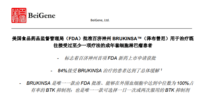 事實上,我國創(chuàng)新藥不乏出海成功的樣本。2019 年11月,百濟神州研發(fā)的首個國產(chǎn) BTK 抑制劑澤布替尼獲美國 FDA 批準(zhǔn)上市,實現(xiàn)中國本土原研抗癌新藥出海“零的突破”,這一消息一度讓醫(yī)藥圈為之沸騰。兩年后,2022年2月,傳奇生物宣布其原創(chuàng)CAR-T產(chǎn)品在美獲批的消息再度刷屏醫(yī)藥圈,消息公布后,傳奇生物在納斯達克的股價大漲超過12%。