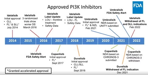 然而,這種看似成功的前車之鑒,似乎并不被業(yè)界看作是他山之石。因為澤布替尼所使用的單臂臨床研究方案,在上月FDA審評PI3K抑制劑中遭到了否定。