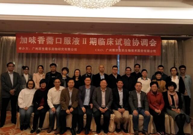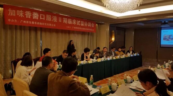 2018年3月10日,中藥天然藥物第6類(lèi)新藥加味香薷口服液Ⅱ期臨床試驗(yàn)方案討論會(huì)在廣州裕通大酒店順利召開(kāi)。受申辦方廣州厚生康樂(lè)藥物研究有限公司委托,廣州博濟(jì)醫(yī)藥生物技術(shù)股份有限公司負(fù)責(zé)本臨床試驗(yàn)的項(xiàng)目管理和臨床監(jiān)查工作。
