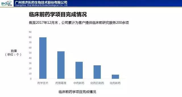 截至2017年12月末,公司累計為客戶提供臨床前研究服務(wù)200余項