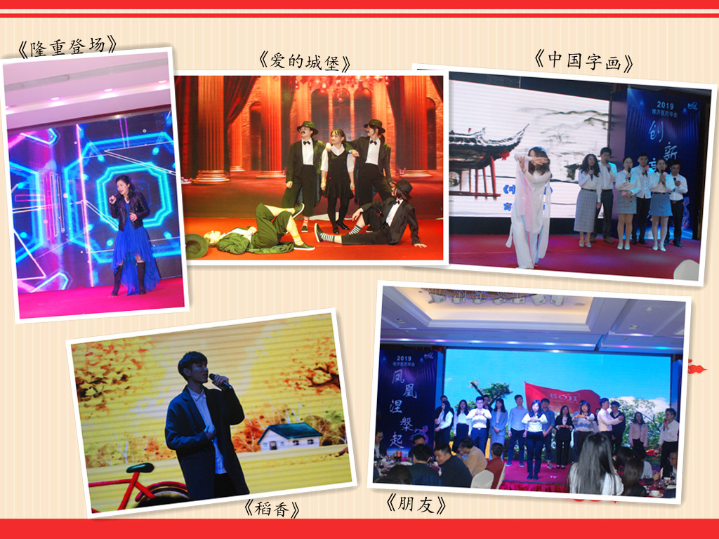 一首《隆重登場》的獨(dú)唱,有如釋放能量般的聲勢;舞蹈配合朗誦的《中國字畫》,在絲綢袖口輕輕卷起,帶入了深遠(yuǎn)靈動的境界;獨(dú)唱《稻香》,把氣氛帶入了溫馨和甜蜜的童年回憶中;《朋友》手語表演,一張張回放的足跡,更是深情流露了支持和陪伴;王董事長和王建華副總經(jīng)理攜手唱起了《真心英雄》,“把握生命里的每一分鐘,全力以赴我們心中的夢”唱響對夢想的堅(jiān)持和希望;一支《愛的城堡》舞蹈,“啦啦啦……”,靈動生機(jī);幽默詼諧的《博濟(jì)贊歌》三句半表演句句入人心,這是齊聚羊城的喜悅和溫暖,共追夢的堅(jiān)定;積極輕松的《Good time》舞蹈舞動了觥籌交錯的喜悅;《博濟(jì)醫(yī)藥的日子》唱出了每個博濟(jì)醫(yī)藥人的心聲,對奮力騰飛的誓言的堅(jiān)持和沉淀;柔情合唱的《我只在乎你》,飽滿爵士藍(lán)調(diào)氛圍回蕩起伏;爆笑小品《搶紅包》將大家引入了搶紅包的歡呼中;一首獨(dú)唱《至少還有你》,動聽抒情;李強(qiáng)總經(jīng)理以飽滿的熱情朗誦《我希望》,尋找“微光”的激情和堅(jiān)持,在雀躍中用美聲獻(xiàn)歌一首,強(qiáng)有力且極具感染力;一支辣舞《SOLO》,傲氣與不羈,青春活力,嗨動現(xiàn)場;深情合唱的《明天會更好》,充滿著青春的驕傲……(晚宴節(jié)目精彩剪影在最下方哦?。?/span>