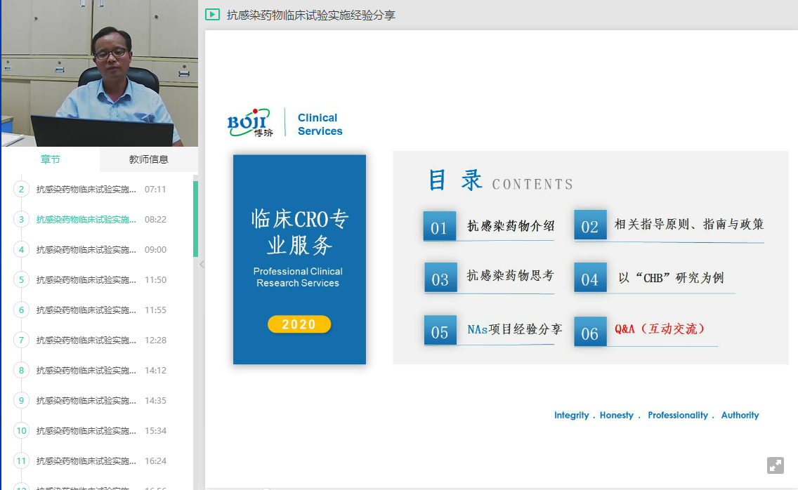 如此龐大的市場(chǎng)需求,使得抗感染藥物研發(fā)與應(yīng)用一直是醫(yī)藥圈的熱點(diǎn)話題。日前,博濟(jì)醫(yī)藥副總經(jīng)理、臨床總監(jiān)譚波作客“博濟(jì)研語(yǔ)”直播間,以《抗感染藥物臨床試驗(yàn)實(shí)施經(jīng)驗(yàn)分享》為題,向廣大網(wǎng)友分享了抗感染藥物臨床試驗(yàn)的實(shí)戰(zhàn)經(jīng)驗(yàn)。