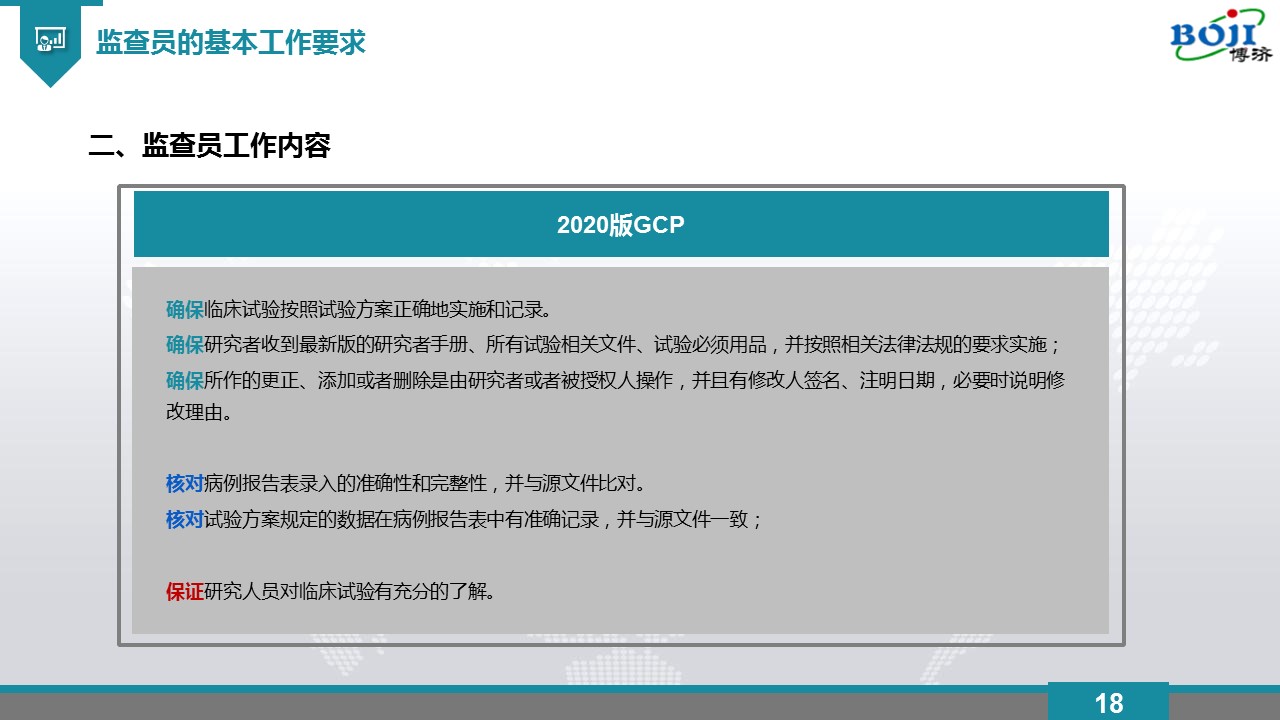 近日,博濟醫(yī)藥質控部總監(jiān)吳煒毅作客“博濟研語”直播間,以《監(jiān)查員如何更好在創(chuàng)新藥物臨床試驗中履職》為題,與廣大網友探討了監(jiān)查員基本工作要求以及個人提升的方法和路徑。