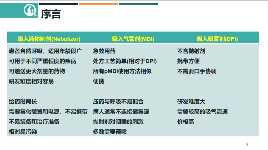 相比于口服制劑,吸入制劑擁有著劑量低、副作用小、快速吸收等諸多特點(diǎn),目前市場(chǎng)上主流的吸入制劑主要分為吸入液體制劑、吸入氣霧劑以及吸入粉霧劑三種。在隨后的直播,李鑫禹對(duì)這三種制劑作了詳細(xì)介紹。