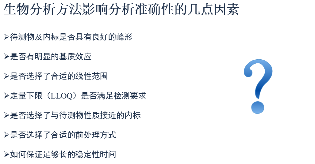 而藥物研究結(jié)果如BE試驗(yàn)等,在很大程度上依賴于準(zhǔn)確、可靠、可重現(xiàn)的生物樣本分析方法,因此,建立高質(zhì)量的生物分析方法頗為關(guān)鍵。