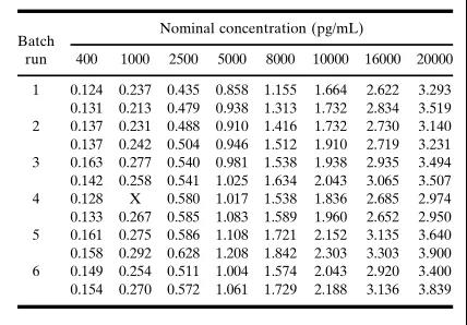 表IV.一個研究前驗證的標準曲線響應(yīng)值