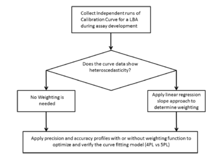 在定量 LBA 方法開(kāi)發(fā)過(guò)程中,本文介紹了一個(gè)簡(jiǎn)單、易于使用的決策樹(shù),以確定校準(zhǔn)曲線(xiàn)的最佳回歸模型和權(quán)重。所推薦的方法將選擇一個(gè)加權(quán)的曲線(xiàn)擬合模型。