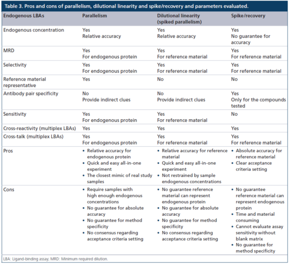 3. Tu, J. and P. Bennett, Parallelism experiments to evaluate matrix effects, selectivity and sensitivity in ligand-binding assay method development: pros and cons. Bioanalysis, 2017. 9(14): p. 1107-1122.
