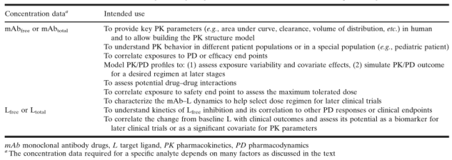 由此來看,在制定mAb的生物分析策略時(shí),重要的是與不同功能團(tuán)隊(duì)中的關(guān)鍵利益攸關(guān)方合作。包括藥物開發(fā)項(xiàng)目所處的階段,何時(shí)以及如何測定每個(gè)藥物開發(fā)項(xiàng)目中的mAb和L。