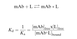 質(zhì)量作用定律可用于計(jì)算或預(yù)測平衡中各組分的濃度。Le Chatelier原理也描述了平衡隨濃度變化而移動(dòng)的趨勢(shì)。圖1表明,mAb結(jié)合到L的部分(fraction of mAb bound to L),除取決于Kd外,還取決于mAb和L的濃度比值。