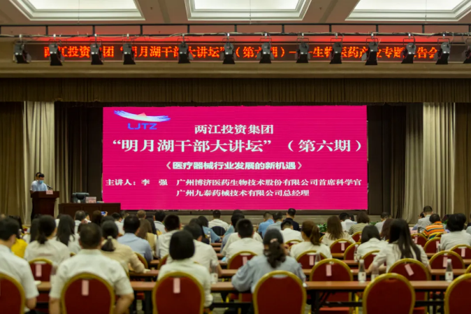 昨天(6月2日),兩江投資集團(tuán)第六期“明月湖干部大講壇”在重慶舉行。博濟(jì)醫(yī)藥董事長(zhǎng)王廷春,博濟(jì)醫(yī)藥首席科學(xué)家(醫(yī)療器械方向)、子公司九泰藥械總經(jīng)理李強(qiáng)受邀出席此次會(huì)議并就生物醫(yī)藥產(chǎn)業(yè)相關(guān)話題作專題報(bào)告。