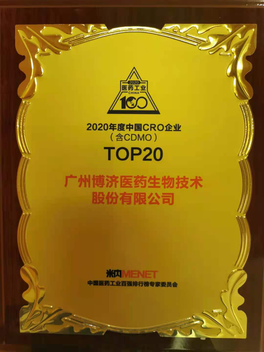 “2020年度中國(guó)醫(yī)藥工業(yè)百?gòu)?qiáng)系列榜單”分為“中國(guó)化藥企業(yè)TOP100排行榜”、“中國(guó)中藥企業(yè)TOP100排行榜”、“中國(guó)CRO(含CDMO)企業(yè)TOP20排行榜”、“中國(guó)醫(yī)療器械(含IVD)企業(yè)TOP20排行榜”、“中國(guó)生物醫(yī)藥(含血液制品、疫苗、胰島素等)企業(yè)TOP20排行榜”5大子榜單,共計(jì)包括恒瑞、石藥、邁瑞、百濟(jì)神州等260家行業(yè)領(lǐng)軍品牌上榜。博濟(jì)醫(yī)藥作為國(guó)內(nèi)領(lǐng)先的CRO公司,憑借其綜合實(shí)力成功登上“2020年度中國(guó)CRO(含CDMO)企業(yè)TOP20排行榜”。