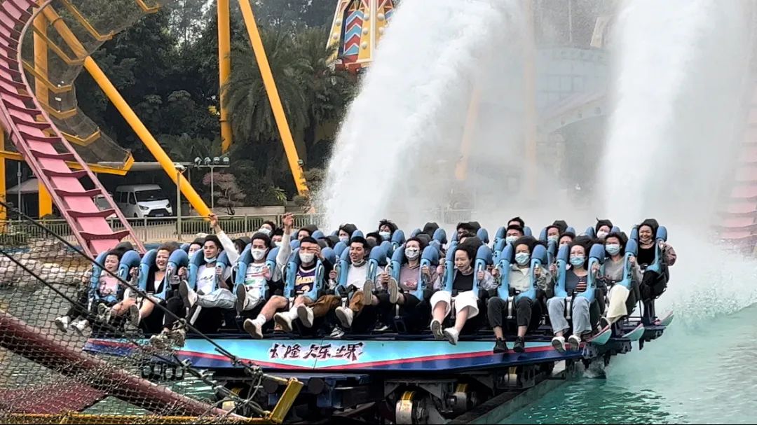 垂直過山車是大多數(shù)小組選擇的第一個項目,此項目需要經(jīng)過兩次與地面垂直90°的軌道,巨大的離心力會使人感覺無法呼吸。在最后一個彎道,過山車將劃過一片水池,濺起的浪花彷如一道長虹劃過長空。能挑戰(zhàn)成功的小伙伴,勇士稱號當(dāng)之無愧!