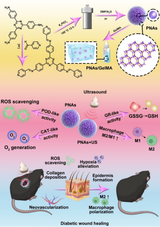 圖2:超聲介導(dǎo)下鉑納米粒子聚集體 “標(biāo)本兼治”的傷口愈合策略