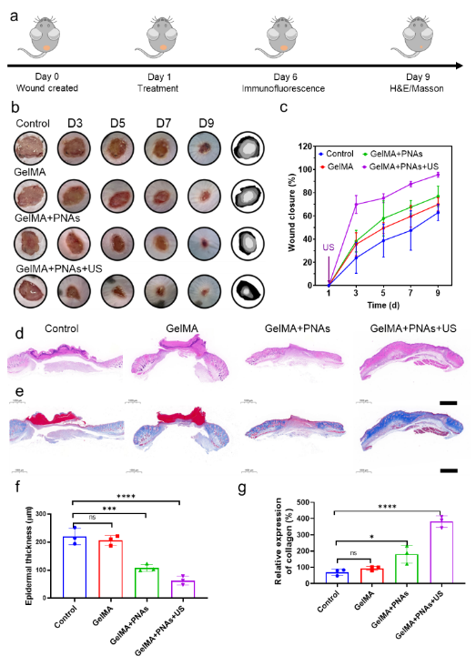 圖5:超聲介導(dǎo)下鉑納米粒子聚集體的糖尿病小鼠傷口愈合實(shí)驗(yàn)