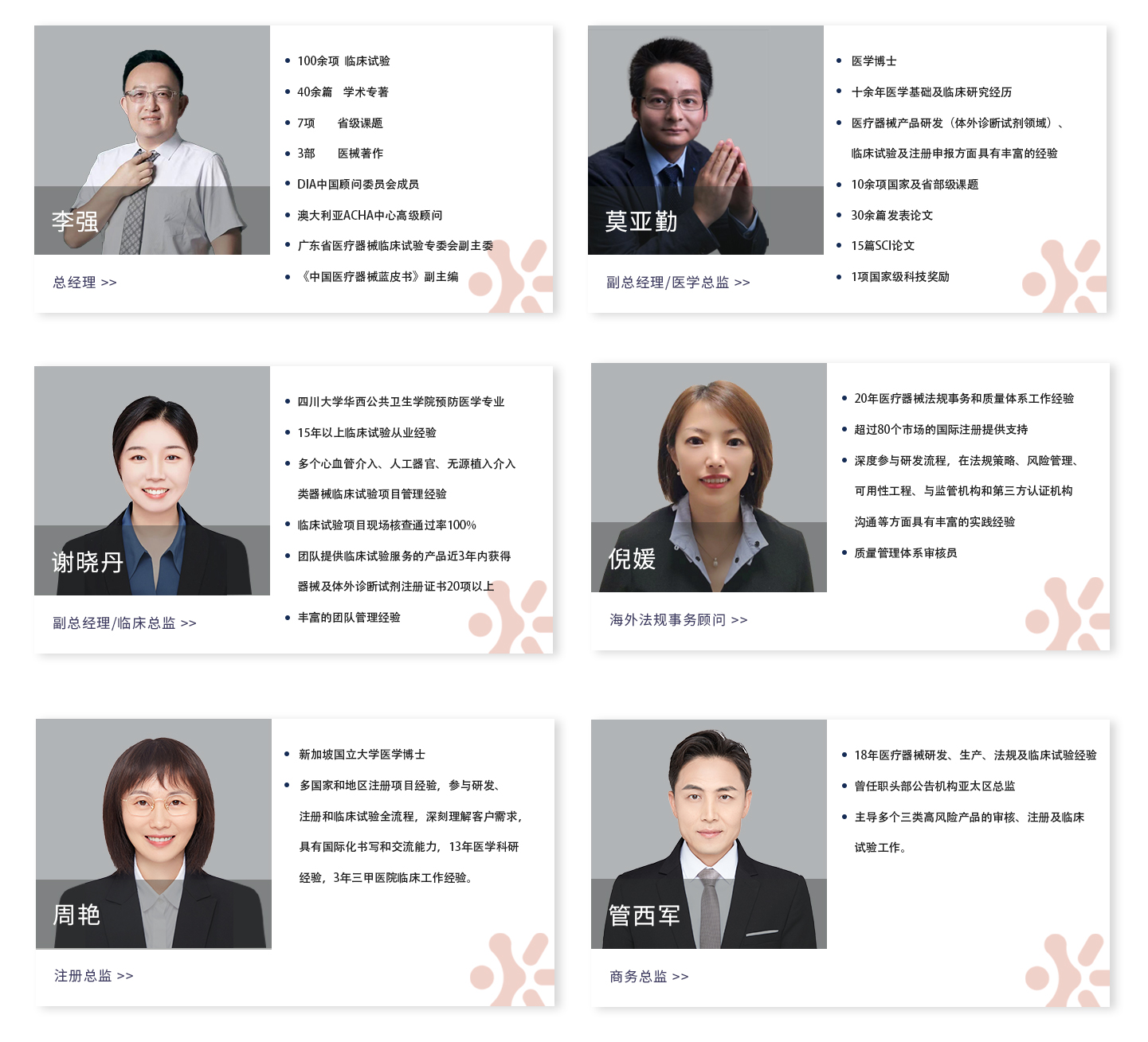 臨床團隊:核心臨床團隊人均8年以上醫(yī)療器械臨床項目運營經(jīng)驗。